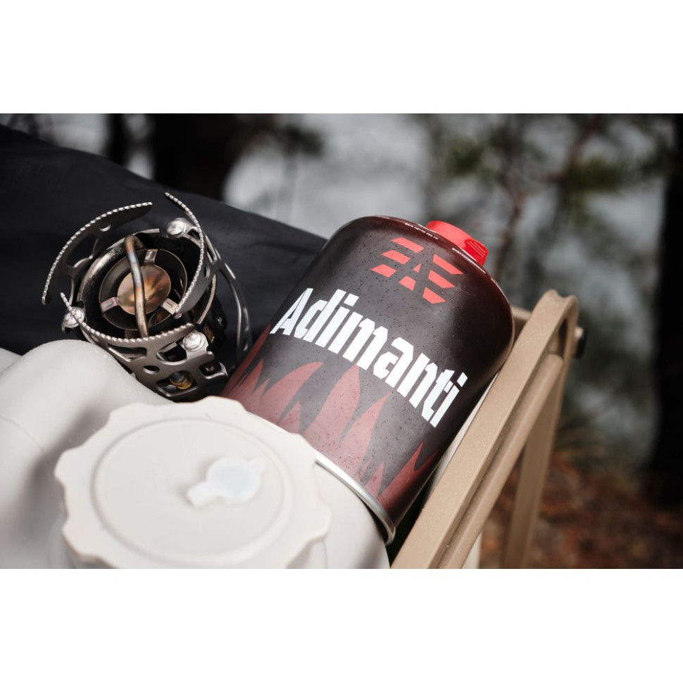 Картридж Adimanti має клапан SBN-188, який доповнений захисною кришкою. Контейнер підходить для експлуатації разом із туристичними пальниками та конфорками, портативними обігрівачами та іншими пристроями, сумісними із різьбовим з'єднанням. Під час приготування у похідному посуді великого об’єму рекомендується додатково використовувати складану підставку під балон для надання конструкції більшої стійкості.