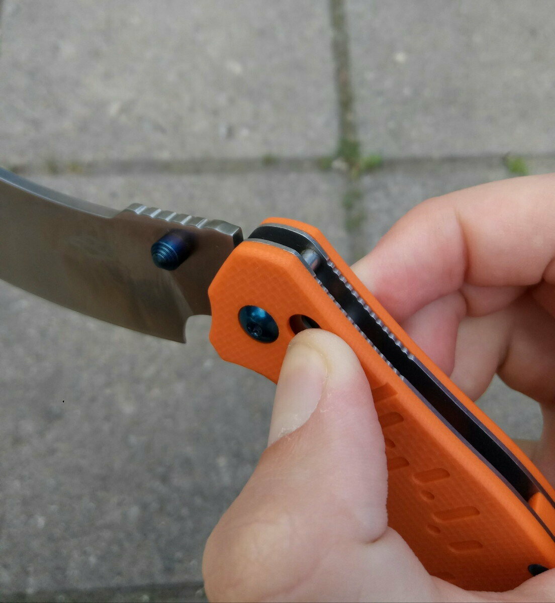 Лезо встановлено точно по центру і не «йде» в одну зі сторін як в складеному, так і у відкритому вигляді.