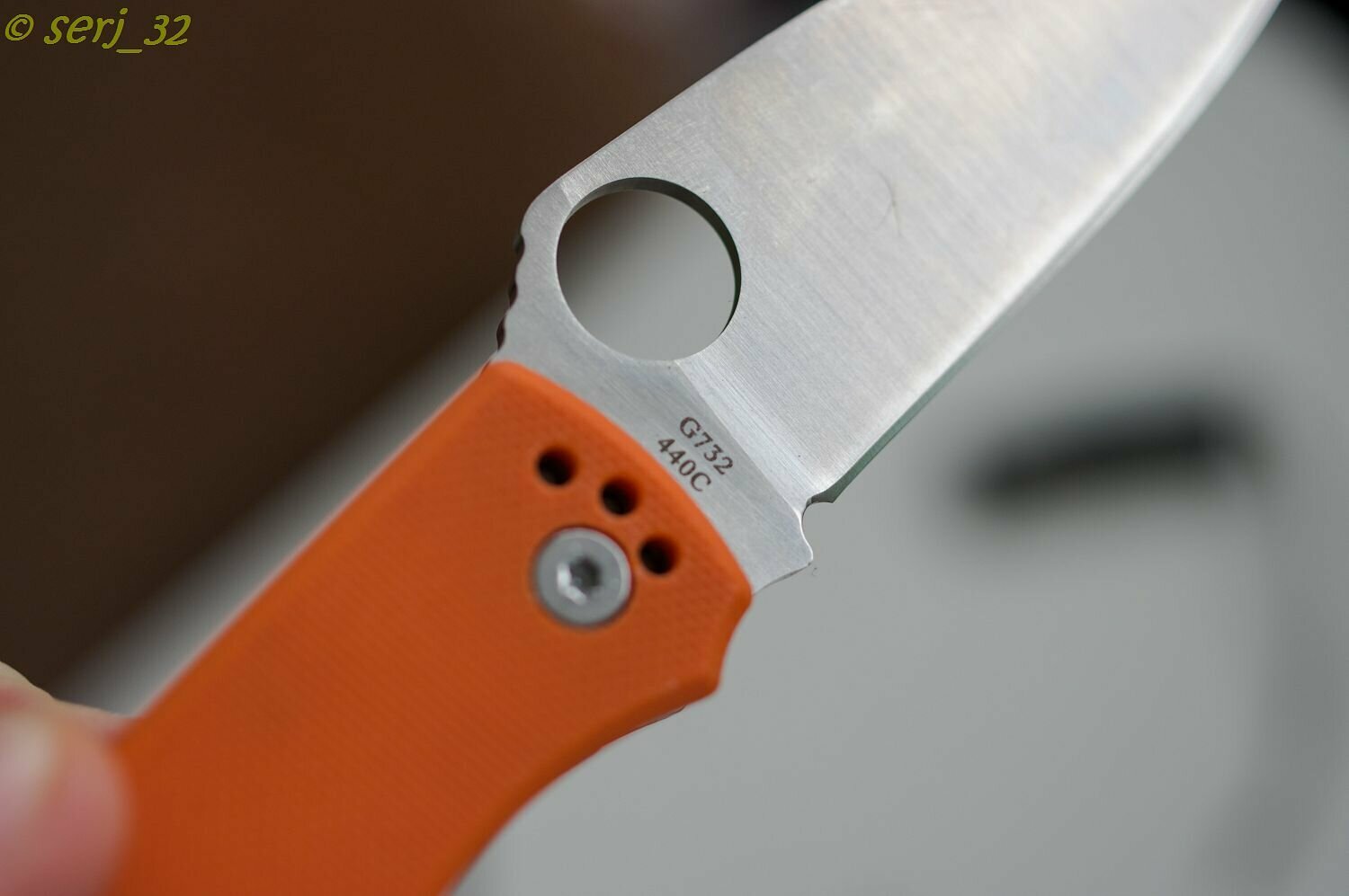 Матеріал клинка-стандартна для Ganzo нержавійка марки 440С.непогано тримає заточку, що не корозує і не кришиться. Заточка "з коробки" - відмінна, зведення-симетричне.