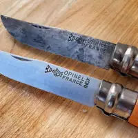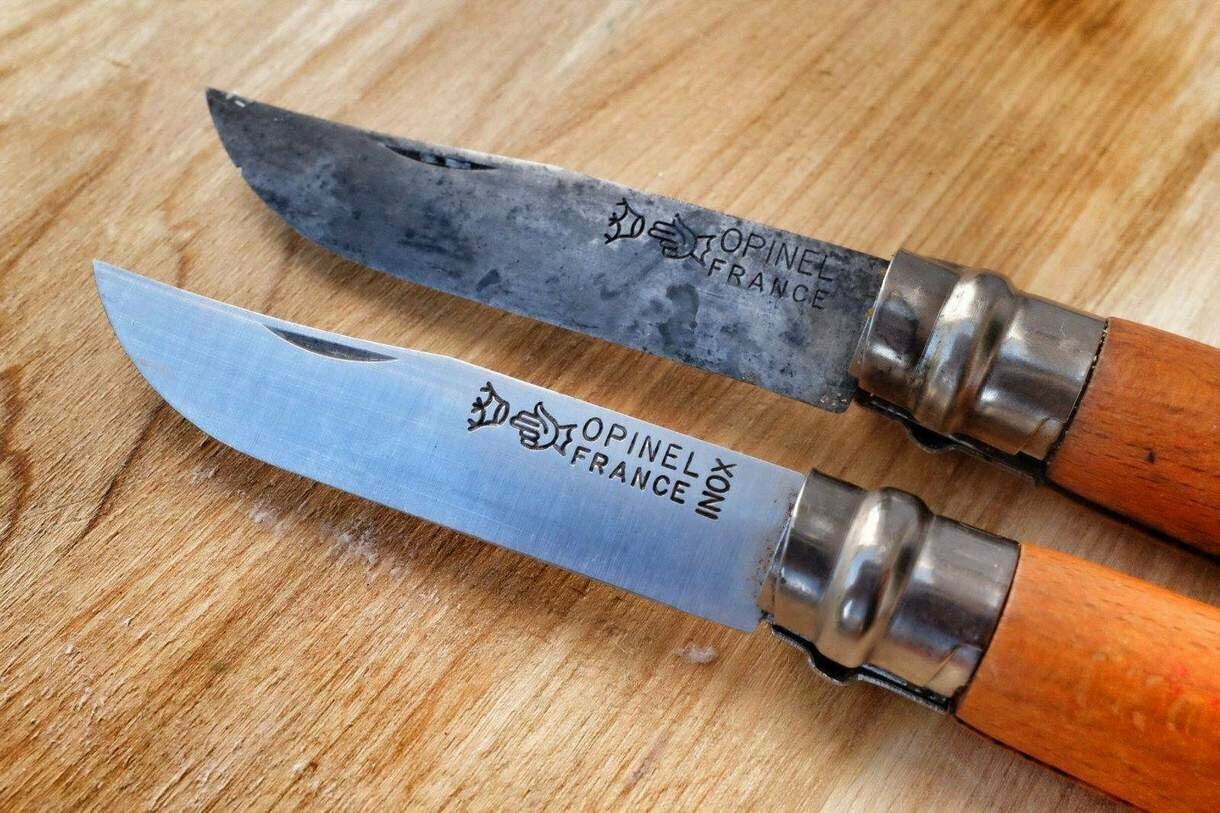 Багато виробників вказують на клинку марку використовуваної сталі або її тип. У разі ножів бренду Opinel, клеймо "Inox" означає застосування нержавіючої сталі.