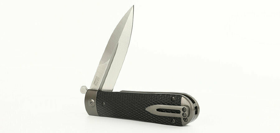 Складаний ніж Adimanti Samson Design розрахований застосування саме в туристичній діяльності, хоча може бути корисний і вдома в побуті. Він має форму леза spear-point, такий різновид клинка зустрічається рідше, ніж, наприклад, тип drop-point. Лезо spear-point походить від гострого списоподібного клинка. Друга ріжуча кромка робиться фальшивою. Такий клинок зручний при виконанні колючих рухів, різати їм не так комфортно. Ніж кишенькового формату на вигляд нагадує кинджал. У нього є невелика витончена кліпса, за допомогою якої можна підвісити виріб до пояса, закріпити на кишені або зафіксувати на сумці.