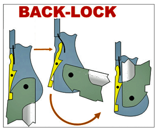 Якість такого замка залежить від кута зрізу клинка і його поверхні: чим краще вона запалерована, тим скольже і гірше виїмка може триматися на штифтової осі.