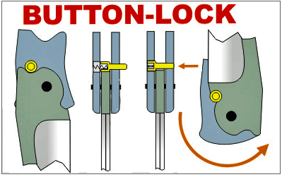 Спочатку застосовувався в автоматичних моделях. Особливість-можливість швидко і просто вивільнити лезо після натискання кнопки. Механіка працює за рахунок двох різних по діаметру циліндрів (більшого і меншого). У осі клинка є виїмка, в яку після натискання на кнопку (стиснення пружини) потрапляє більший циліндр, нерухомо його фіксуючи (в результаті розтискання пружини). Відкриття /закриття відбувається завдяки натисненню на кнопку, яка для підвищеної безпеки "втоплена" в рукояті, щоб уникнути випадкового натискання. Теж використовується ідея з пазлом, що підвищує надійність.
