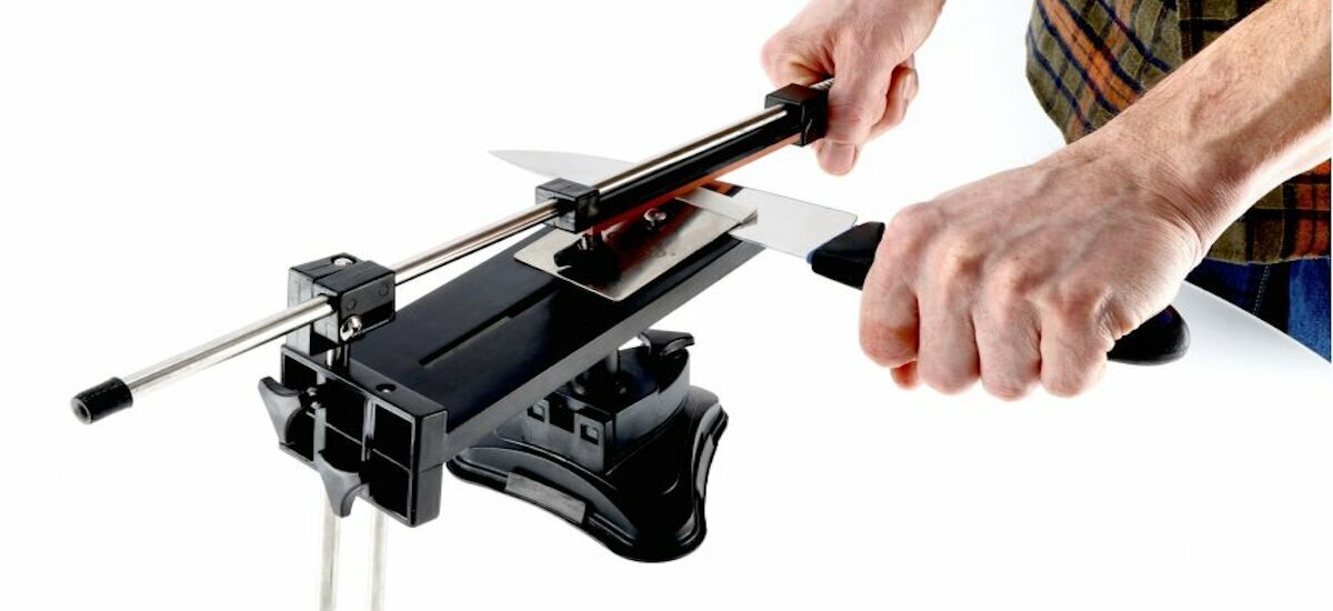 Можна сказати, що верстат — це щось середнє між класичними точильними каменями та ручними точилками зі слотами. Але якщо з каменями потрібен великий досвід і впевненість у руках, а ручні моделі обмежені у функціоналі, то верстат поєднує найкращі риси обох варіантів, дозволяючи досягти еталонної гостроти на рівні заводського заточування.