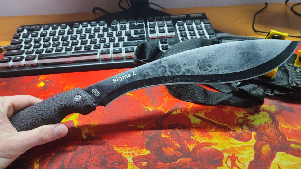 Мачете пришло быстро, с гравировкой точно как заказывал (Sigma). Само мачете достаточно увесистое, можно частично им заменить топорик. Рукоятка из приятной на ощупь резины, сидит плотно без люфтов и в целом внушает доверие. Если мачете быстро разболтается или что плохое случится - повторно напишу отзыв. А так в целом товар стоит своих денег и вполне оправдывает ожидания.