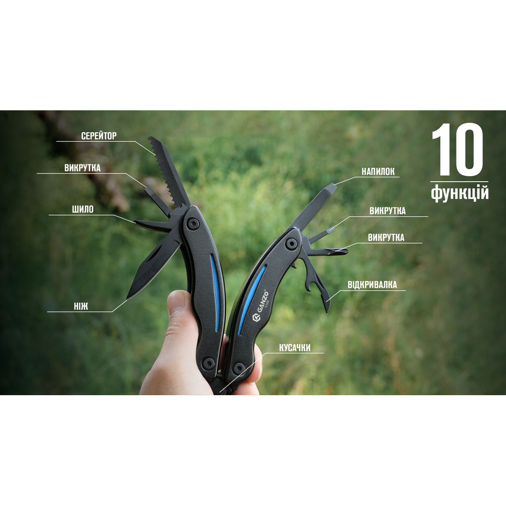 Ganzo G109-це повнорозмірний мультитул з мінімальним комплектом необхідних інструментів. Невелика кількість інструментів робить його компактним і відносно легким. Прекрасний мультитул для щоденного носіння і використання на риболовлі, полюванні і т. д.
