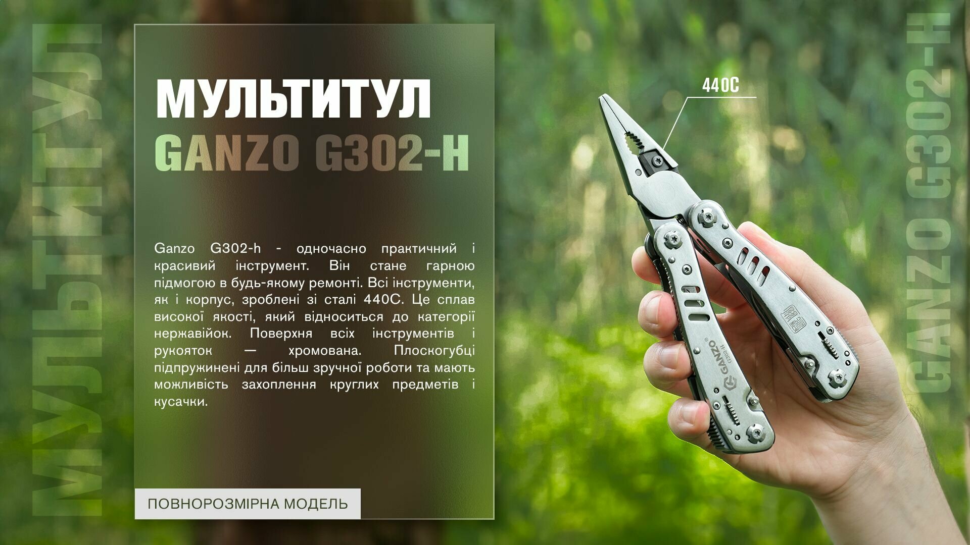 Повнорозмірний мультитул Ganzo G302-Н - одночасно практичний і красивий інструмент. Він стане гарною підмогою в будь-якому ремонті, а подарунку у вигляді мультитула цієї моделі зрадіє кожен мандрівник або просто любитель активного дозвілля на природі.