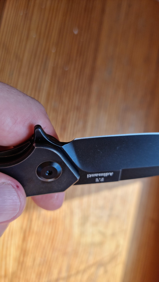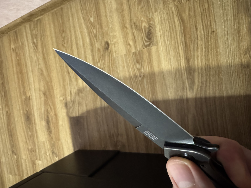 В цілому ніж гарний і непогано зроблений. Але як і попередньому відгуку у мене така ж ситуація. Загострення ножа-ніби пила. Певно якийсь китаєць гритність нижче 120 не бачив. Підводи так само не рівні. Тепер хоч бери та заточну систему купляй і переточуй. Як завжди щось та напартачать. Ще забув, що осьовий не дотиснутий з коробки. Шукай торкс і докручуй. Розчарований. За оверпрайс може бути і краще