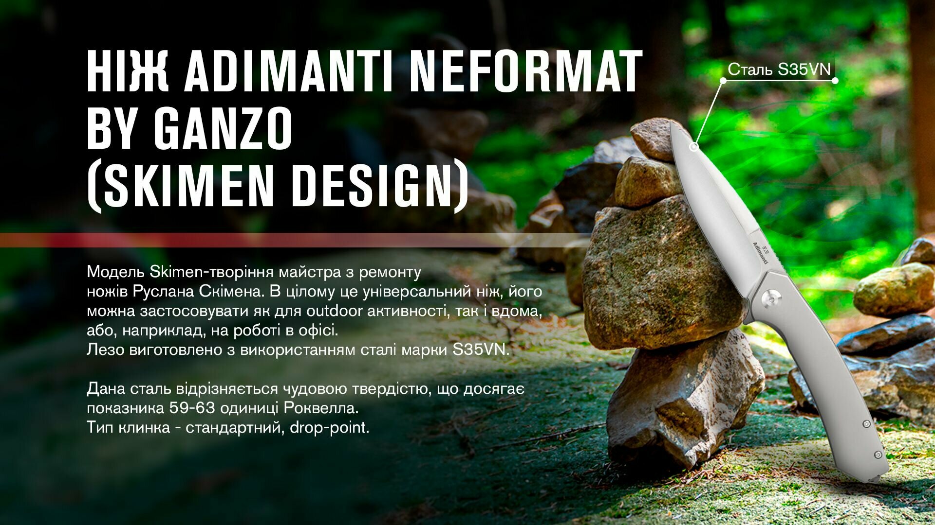 Опис ножа Adimanti Neformat by Ganzo (SKIMEN DESIGN) титанова рукоять S35VN: