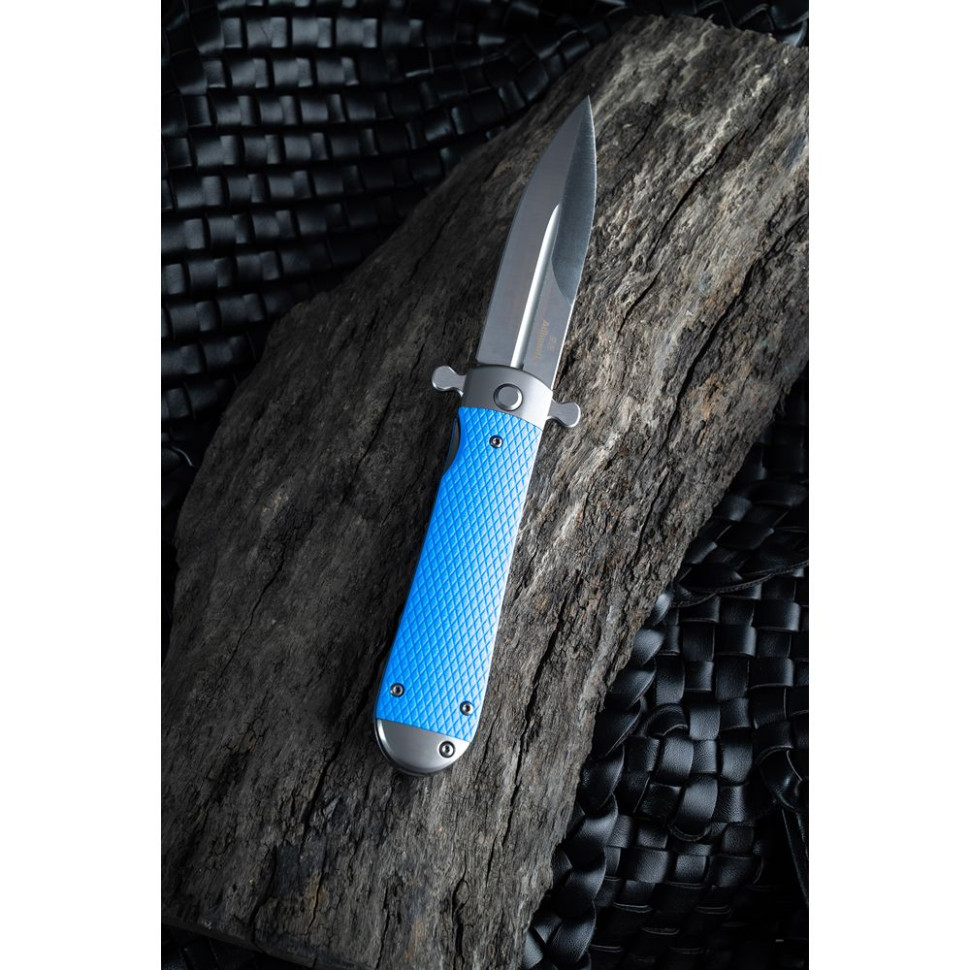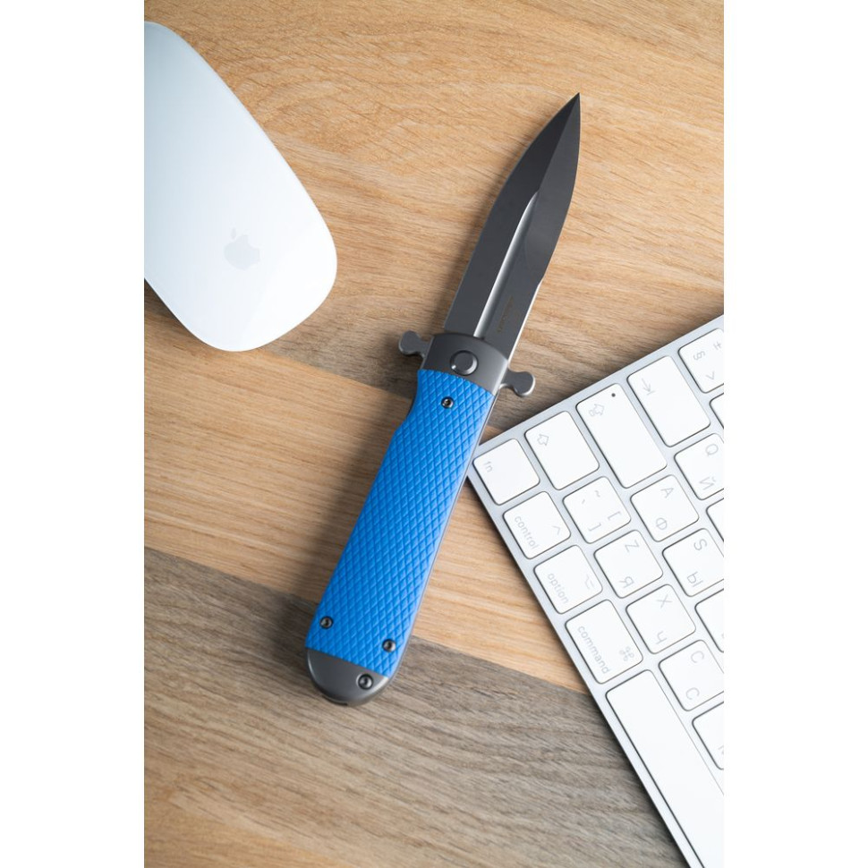Клинок має форму Spear-Point з фальшлезом з боку обуха. З такою списоподібної формою легко виконувати колючу роботу, коли потрібно щось підколупнути, наколоти або тонко надрізати. З базовим завданнями клинок ефективно справляється за рахунок своєї довжини в 94 міліметри і товщини, що становить 3.5 міліметра.