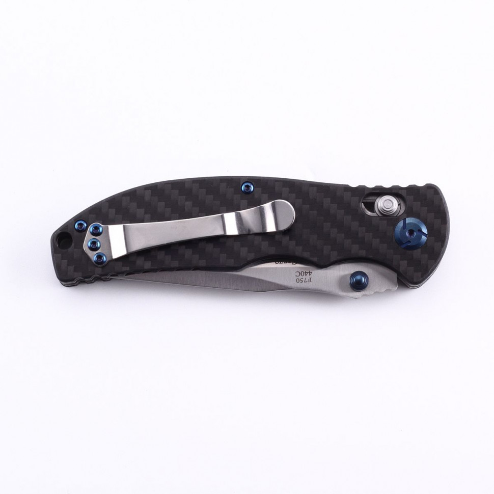 Рукоятка виготовлена з високотехнологічного композиційного матеріалу (Carbon Fiber), який являє собою безліч переплетених карбонових ниток. Перевагами рукоятки з такого матеріалу є висока міцність, невелика еластичність і вкрай мала вага. Спеціально для того, щоб рукоять мала велику довговічність, виробники часто створюють з карбонових волокон своєрідні переплітаються візерунки. Точно так само вчинили і інженери Ganzo при конструюванні ножа F7501-CF.