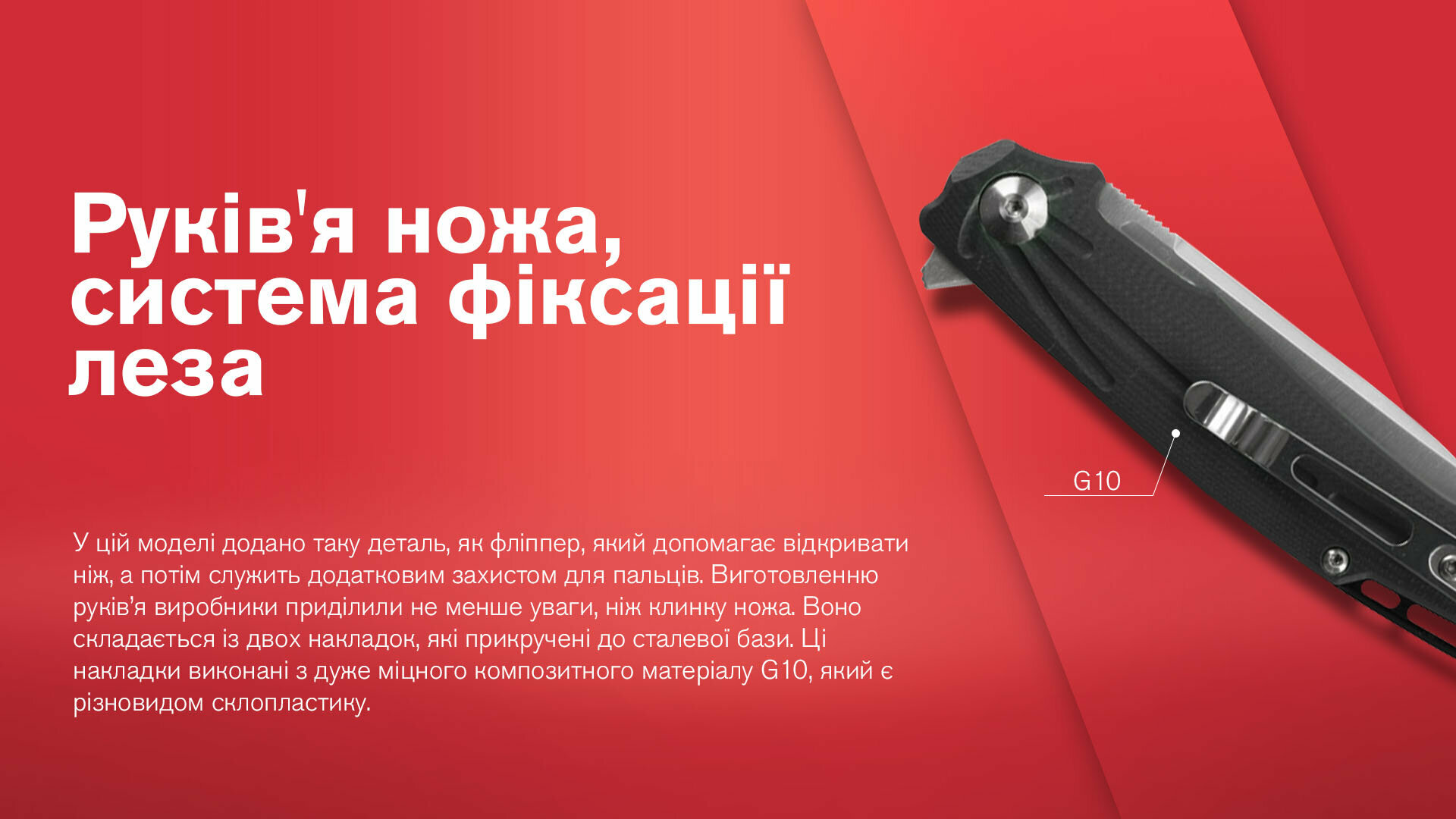 • неслизька рукоять з матеріалу G10;