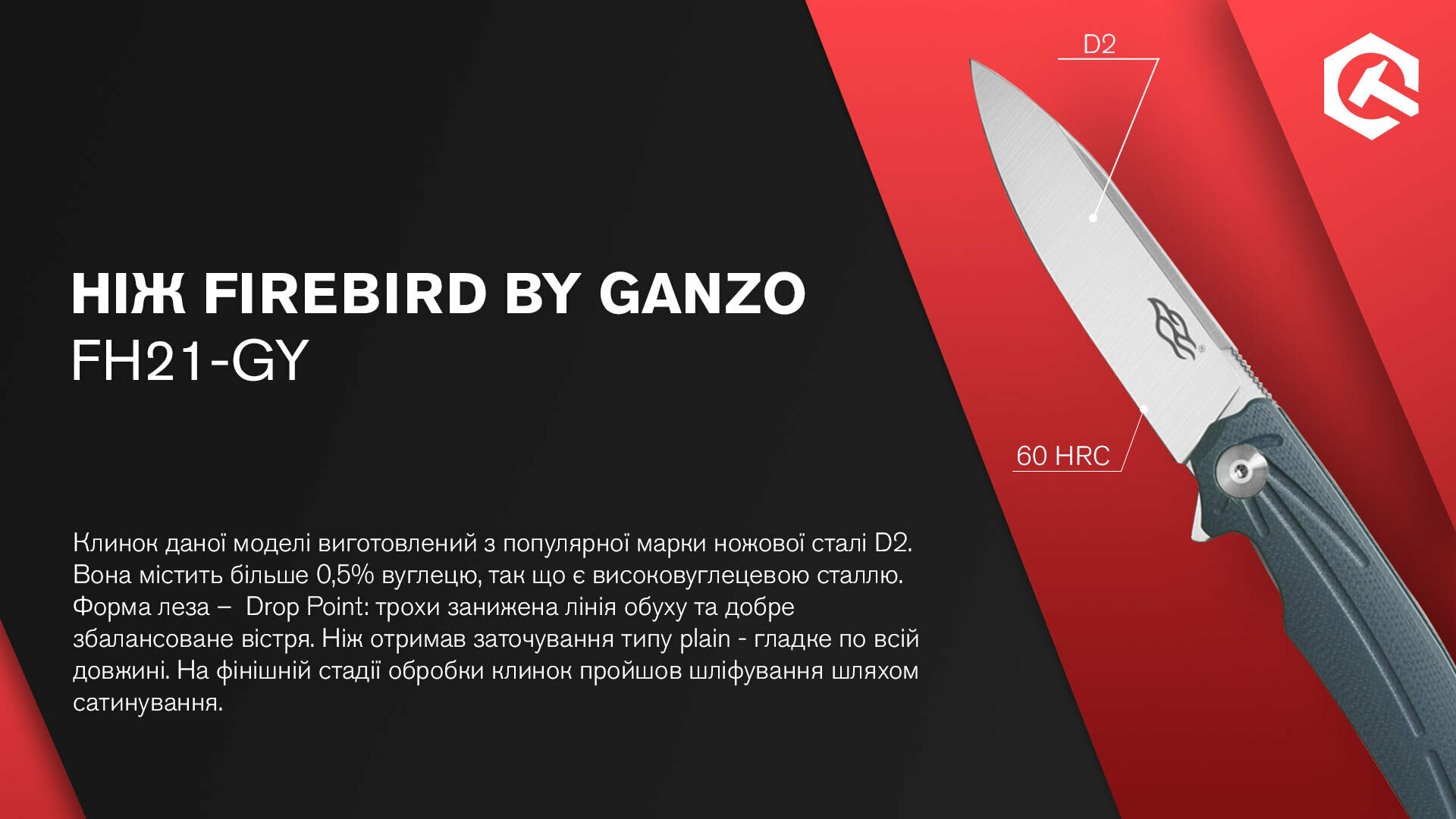 Ніж Firebird by Ganzo FH21 сталь D2 сірий