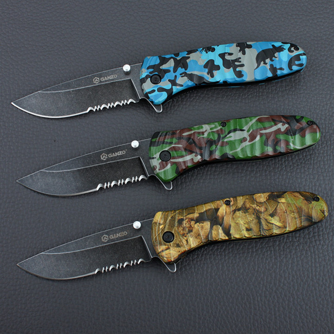 В асортименті компанії також присутні 2 різновиди ножа з камуфляжним забарвленням в зелених і жовтих тонах.