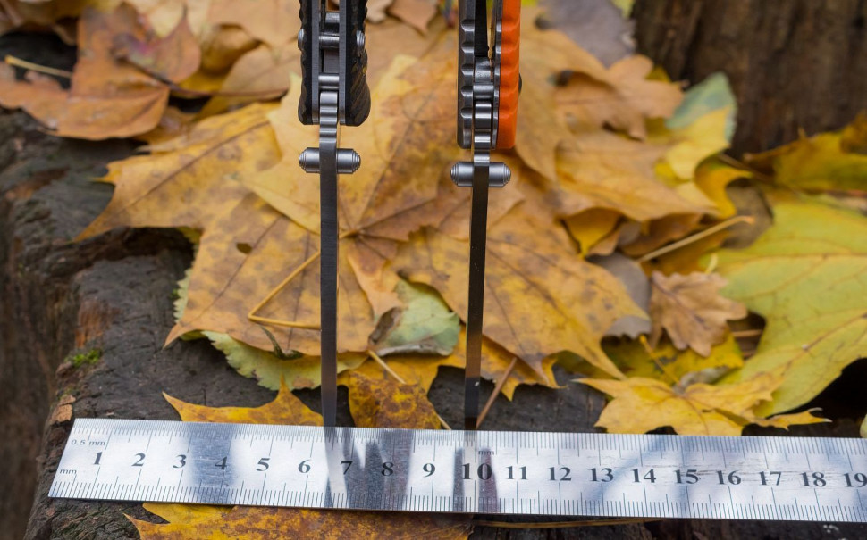 Довжина Ganzo 722 у відкритому вигляді становить 21 см. з них 9 см припадає на лезо з універсальною прямий заточуванням, товщина якого з боку обуха дорівнює 4 мм. у складеному вигляді довжина ножа дорівнює 12 см.
