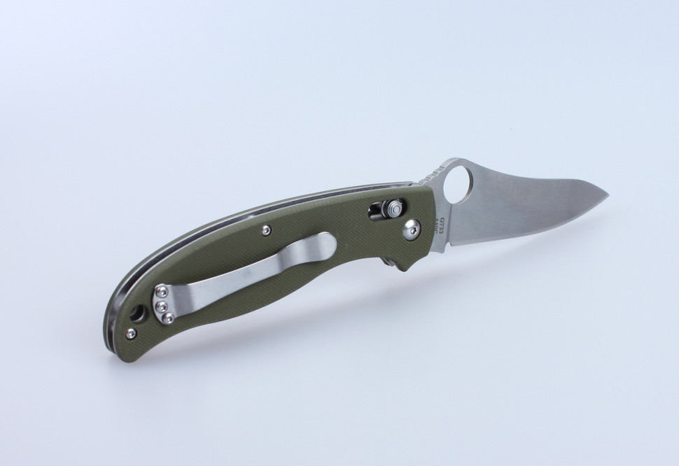 Ganzo G733 зайняв гідне місце у великому сімействі складних ножів цього бренду. Виробники забезпечили його всім необхідним, щоб цей ніж прекрасно служив під час відпочинку на природі і був корисний в міських умовах. Для леза виробники обрали сталь 440С з категорії нержавіючих сплавів. Вона вважається кращою в своїй серії, оскільки врівноважує найбільш важливі для ножового металу характеристики. Сталь переносить контакти з водою, не іржавіючи, але в ній міститься досить багато вуглецю, щоб твердість гарту можна було довести до 58 HRC. Тому ножі з неї досить довго не затупляются. Ganzo G733 гладко заточений, а тому для догляду за ним підійде практично будь-яка кишенькова або стаціонарна точилка. Поверхня клинка оброблена популярним в даний час методом Stone Wash. В результаті, лезо стає практично матовим, хоча і відображає деякі сонячні промені. Але важливо, що дрібні дефекти, такі як подряпини, на його поверхні набагато менш помітні.