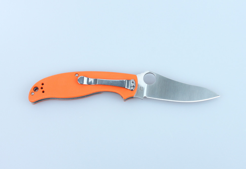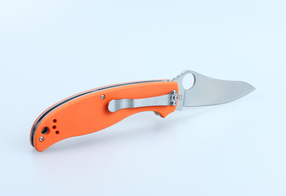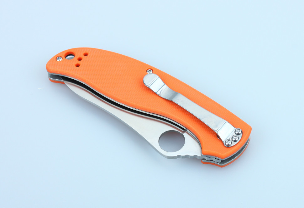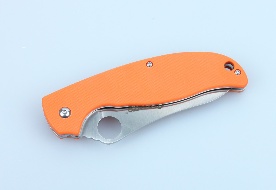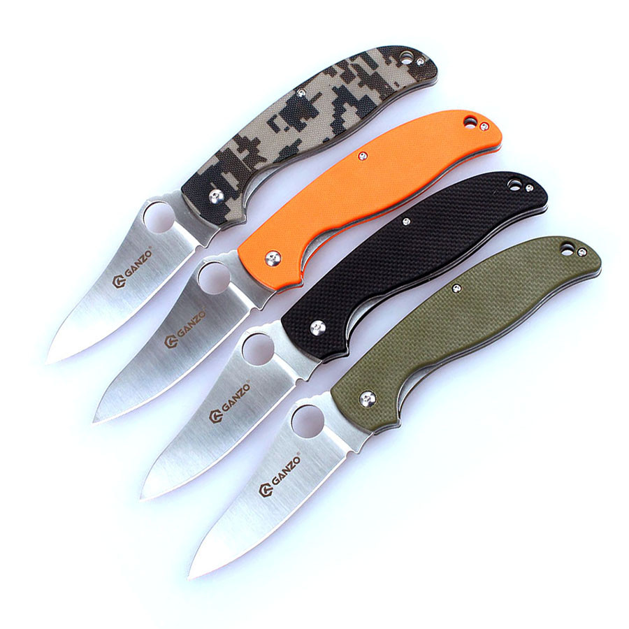 Щоб ніж було зручно тримати, а його зовнішній вигляд був привабливим, на рукоятці зроблені накладки з G10. Це композитний матеріал, що представляє собою з'єднання епоксидних смол зі скловолокном. Він дуже міцний і стійкий до корозії, легко формується і довгий час зберігає початкові характеристики. Оскільки склопластик легко забарвлюється, виробники запропонували покупцям чотири варіанти ножів Ganzo G734 з рукоятками різного кольору. Це болотно-зелений, чорний, яскравий помаранчевий і камуфляжний.Особливість: