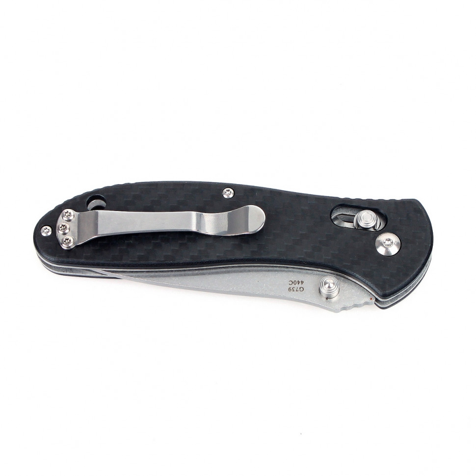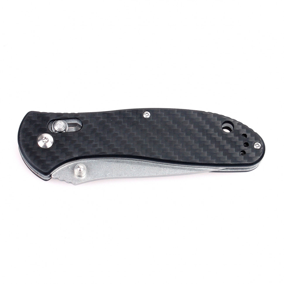 Туристи і рибалки вважають за краще використовувати в своїх поїздках саме складні ножі: вони компактніше і не вимагають чохлів і піхов. Якраз таку конструкцію і отримав G7392-CF. Для ножа використовується хороша за якістю сталь 440 групи С.вона найбільш тверда в своїй категорії, хоча і захищена від корозії не гірше інших нержавійок. Завдяки твердості на рівні 58HRC, ножі з цієї сталі довгий час залишаються гострими після кожного заточування. Лезо в даній моделі-гладке. Цей спосіб заточування визнаний універсальним, оскільки підходить для більшості матеріалів, які ніж буде різати рівно і акуратно. Сама ж поверхня леза виглядає майже матовою, адже вона оброблена методом грубого шліфування Stonewash. Це популярний метод обробки, який дозволяє приховати багато з'являються з часом подряпини на клинку ножа. Покупці також віддають йому перевагу за те, що на такому ножі не залишаються відбитки пальців, а в променях сонця він практично не блищить.