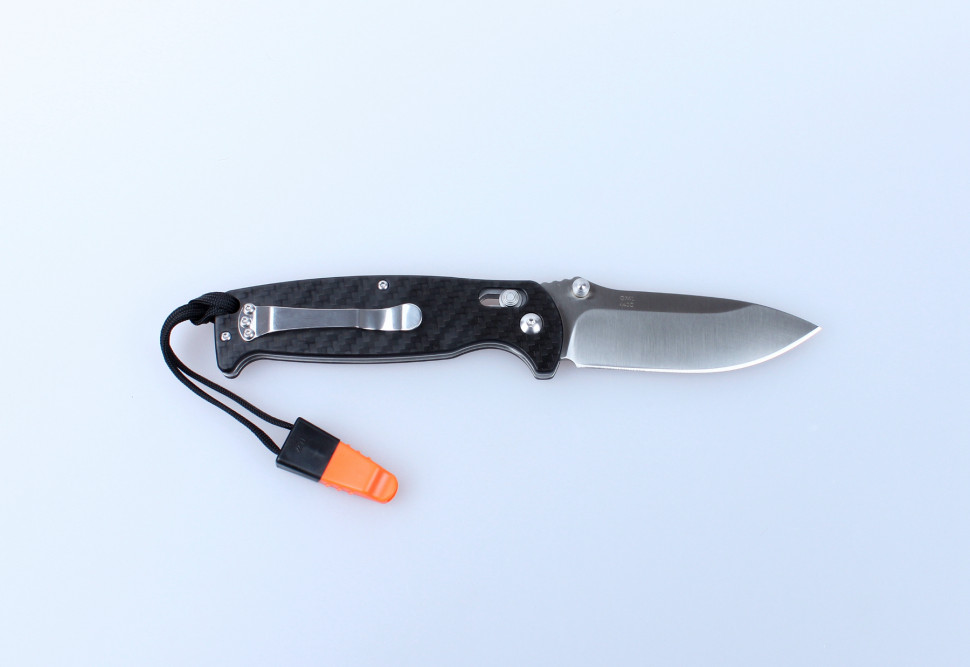 Для рукоятки інженери компанії Ganzo вибрали карбоновий вид пластику з композитною структурою з переплетених вуглецевих ниток і полімерних смол. Цей матеріал легкий і не сприйнятливий до корозії. У той же час, по міцності він порівняємо зі сталлю. Колір рукоятки для Ganzo G741-чорний. На ній є кліпса зі сталі, щоб ніж можна було закріпити на ремені. Крім того, в отвір на кінці рукоятки протягнутий ремінець зі свистком, який можна використовувати для подачі сигналів в будь-яких екстремальних умовах.
