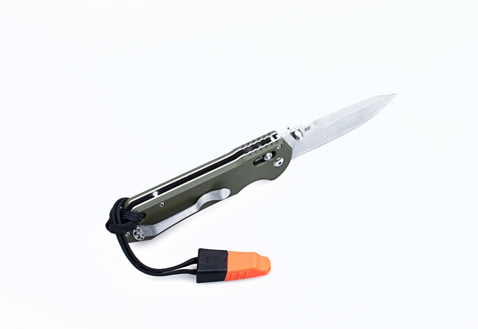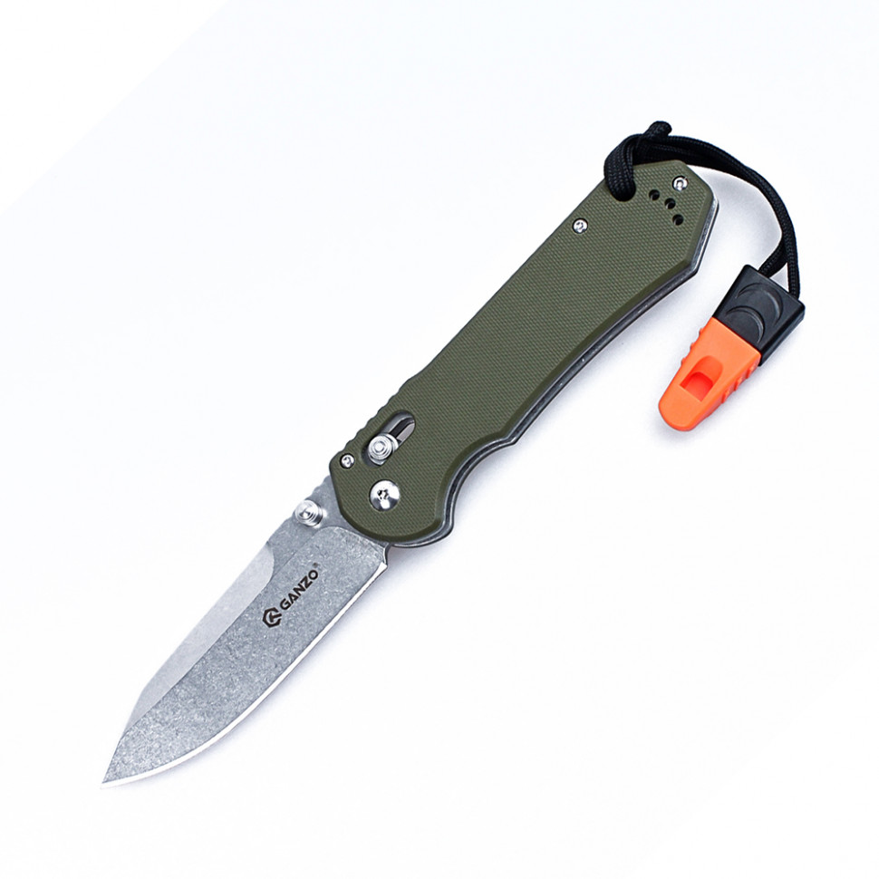 Складні ножі особливо зручні для туризму, а модель Ganzo G7452 зроблена таким чином, щоб врахувати всі особливості польового використання. Метал для цього ножа-нержавіючий. Це тверда марка сталі 440С (близько 58HRC), яка здатна довгий час зберігати високу якість заточування. Клинок має гострий кінчик, характерний для форми drop-point, і повністю рівну лінію заточування. Щоб на поверхні леза не були помітні подряпини, воно оброблене камінням за методикою Stonewash. Як результат — метал матовий, але не однорідний. Він повністю гладкий, а подряпини на такій поверхні практично не видно. До того ж, матові ножі можуть використовуватися не тільки в туристичних, але і в тактичних цілях.