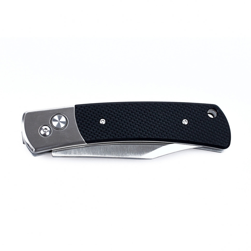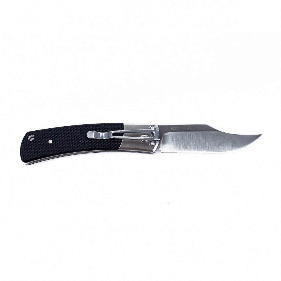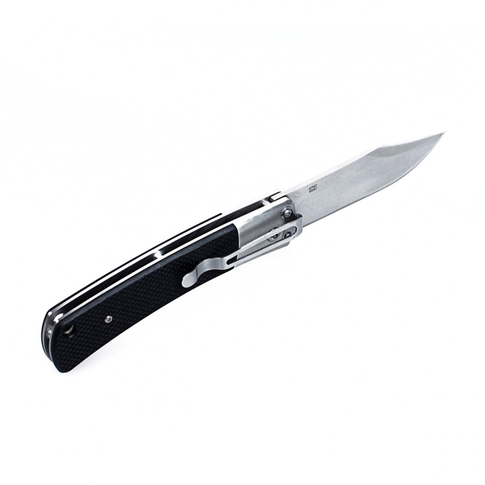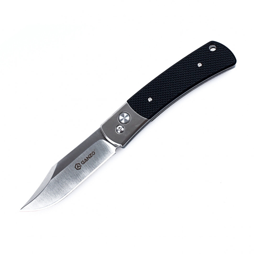 Модель Ganzo G7471 поповнила велике сімейство складних ножів цієї торгової марки. По дизайну вона одночасно стримана і тяжіє до класичних ножів, і енергійна за рахунок оригінальної форми клинка. Цей ніж припаде до смаку любителям заміських поїздок, оскільки він в змозі виконати будь-які із завдань, характерних для відпочинку на природі. Лезо G7471 зроблено зі сталі, промаркованої як 440С.вона відноситься до категорії нержавіючих і в своїй серії є найтвердішою. Це дозволяє власнику ножа не турбуватися як про можливу появу іржі, так і про часте заточування ножа. Практично єдине, що потрібно, це витирати ніж після використання і періодично підновляти заточку. При цьому, довжина леза, рівна 9.2 см, є зручною для приготування бутербродів, нарізування овочів або інших продуктів. За допомогою цього ножа досить просто розрізати картон, мотузки, обточувати гілки і виконувати інші підсобні роботи. Заточене лезо за універсальним принципом-гладко. Цікавою є його форма-Боуї. Вона легко впізнається завдяки скосу на обуху і піднятою точці вістря.