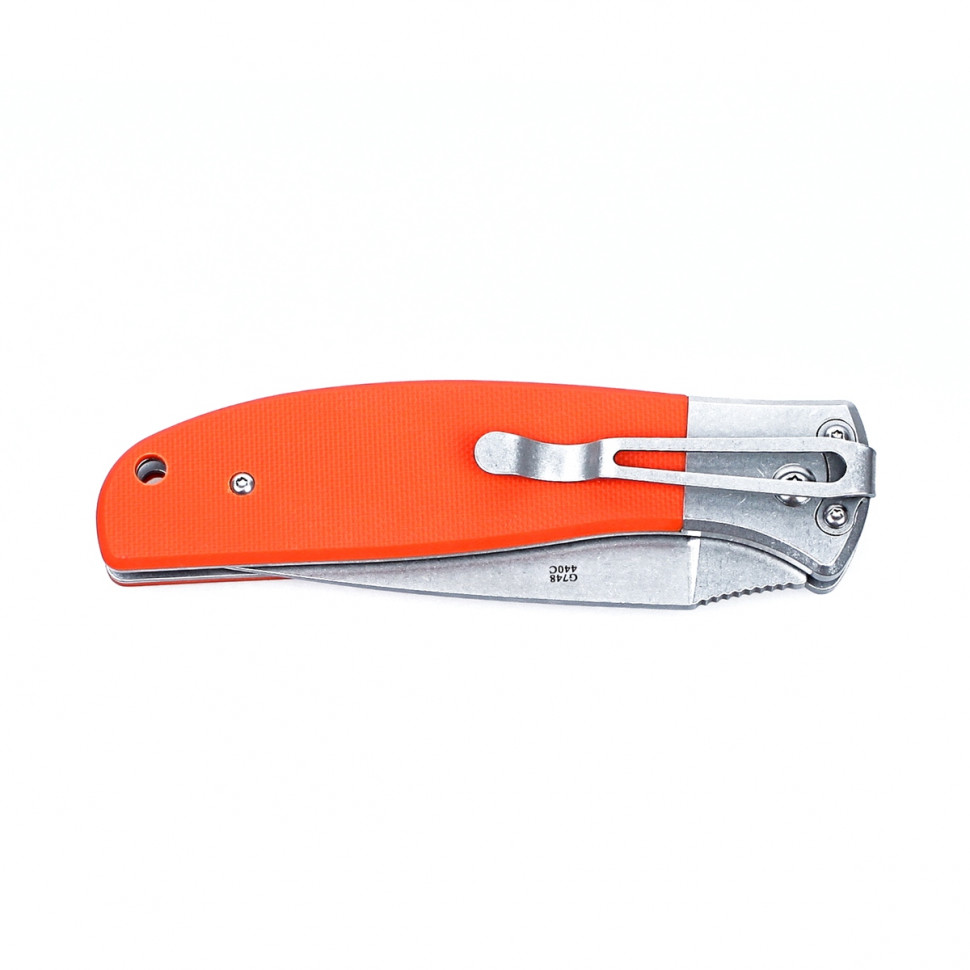 Ніж Ganzo G7482 відноситься до числа складних кишенькових моделей. Його зручно використовувати на природі, оскільки для перевезення такого ножа не будуть потрібні піхви, а місце він займає мінімальне. Виробники подбали про міцність і зручність використання цього ножа, тому його популярність стала цілком логічною. Клинок Ganzo G7482 виготовлений зі сталі 440С.це сплав з твердістю в межах 58 одиниць і високим рівнем захищеності від корозії. Саме такі нержавіючі сталі є кращими для використання на природі, оскільки мінімального догляду буде достатньо, щоб вони повністю зберігали свої початкові властивості. Розмір клинка ножа склав 8,9 см. лезо має гострий кінчик для точних надрізів і повністю рівно заточену ріжучу кромку. Лезо оброблено популярним нині методом сатинування. Під прямими променями вона буде блищати, але все ж на сатиновій поверхні набагато менш помітні відбитки пальців, ніж на глянцевому ретельно відполірованому ножі.