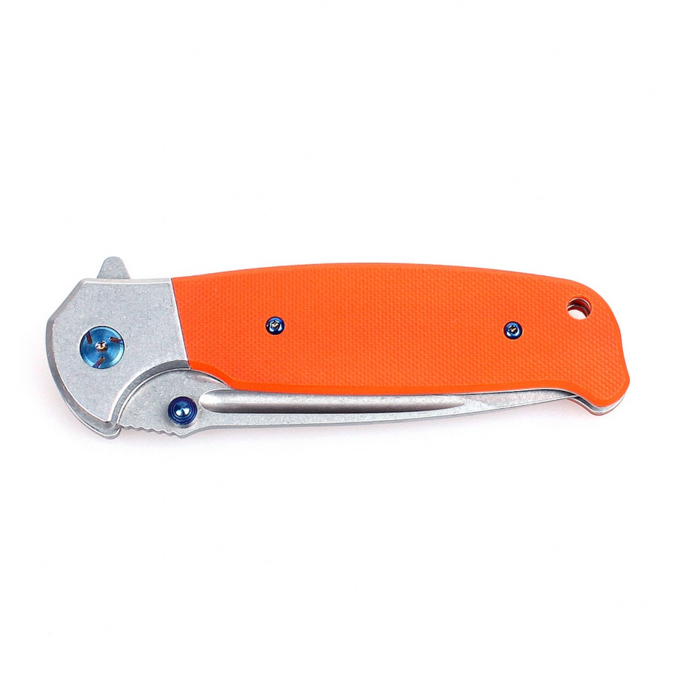 Для оформлення рукоятки з матеріалу G10 зроблені дві накладки. Вони прикручуються гвинтами з обох сторін сталевої основи. Поверхня накладок-нерівна, щоб вони не ковзали навіть в тому випадку, якщо рука в рукавичці. Покупці можуть придбати ніж з помаранчевої, чорної або болотно-зеленої рукояткою. На накладках також передбачено місце для кліпси, якщо власнику ножа захочеться переставити її в інше положення. Сама ж кліпса прикручена до сталевої частини ручки, яка розташована ближче до клинка.