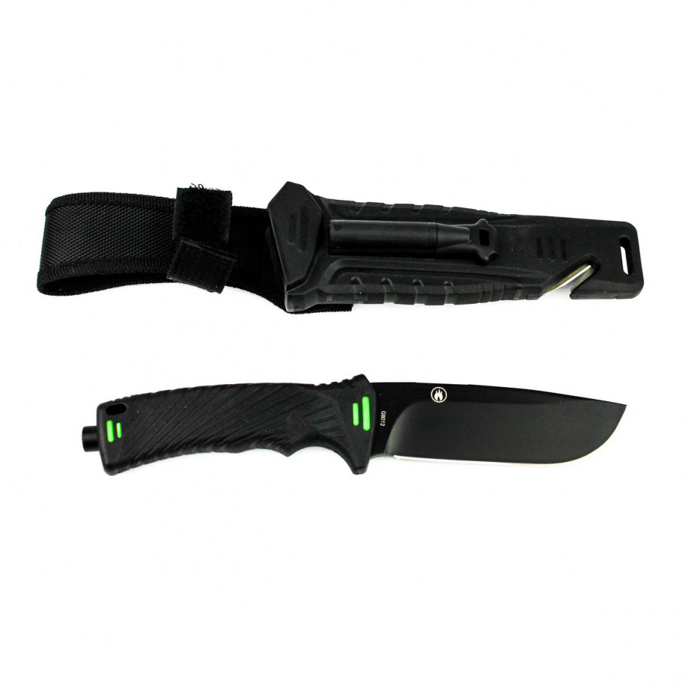 Ніж моделі Ganzo G8012 варто взяти з собою в подорож або турпохід, в будь-яку експедицію. Він створений таким чином, щоб прийти на допомогу своєму власникові навіть у найскладніші моменти. Основний матеріал ножа-сталь марки 7cr17. Вона містить велику кількість вуглецю і може бути загартована до 57 HRC. При цьому, корозійна стійкість сплаву без проблем дозволяє використовувати його в умовах підвищеної вогкості. Клинок жорстко зафіксований по відношенню до рукоятки, що підвищує стійкість ножа до навантажень. 11,5 см із загальної довжини припадає саме на клинок, який має пряму заточку. Поверхня леза матова і чорна. Крім того, що такий ніж дуже стильно виглядає, він цілком може використовуватися в тактичних цілях.