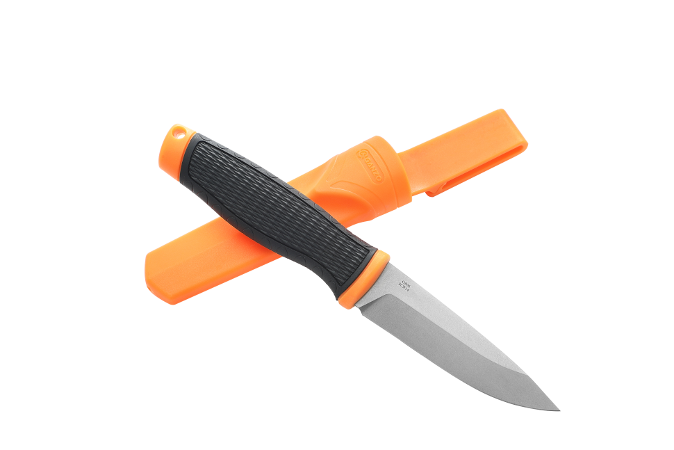 Ергономічна рукоять зроблена з матеріалу ПП+ТПР. ТПР або термопластична гума – це синтетичний полімер, що володіє властивостями гуми і пластика. В рукавичках він використовується як шар, що захищає руку від ударних впливів – здатний поглинати і розсіювати енергію удару. Працювати таким ножем безпечно і зручно. Піхви поліпропіленові.