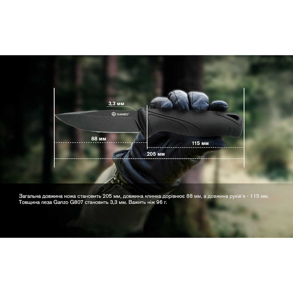 Опис ножа Ganzo G807BW-BK чорного з чохлом: