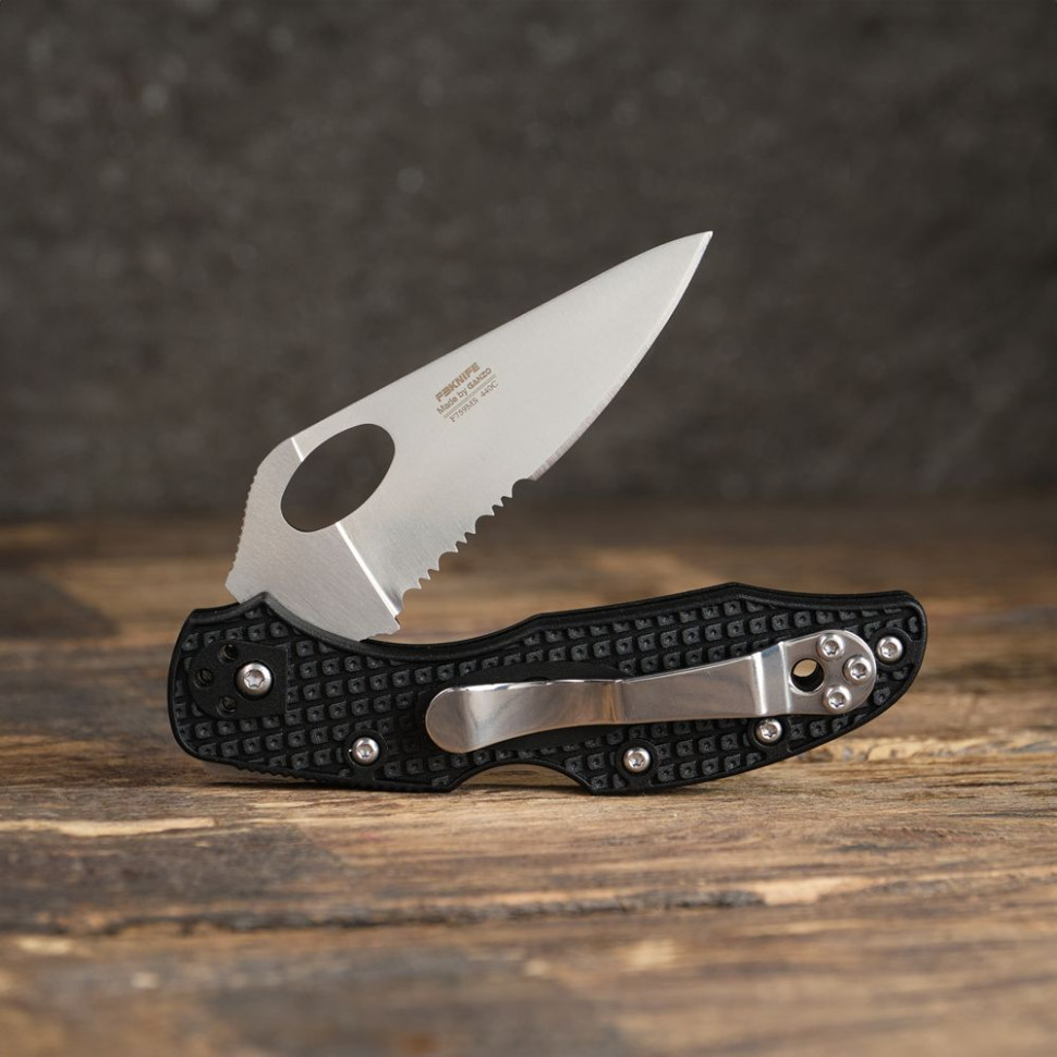 Клинок даної моделі має комбіноване лезо: половина леза ближче до основи має серрейторную заточку, а друга половина — пряму заточку. Класична пряма заточка-це універсальне лезо для більшості повсякденних завдань, в яких необхідний рівний рез, в той час як серрейтор відрізняється більш тривалим утриманням гостроти і призначений для виконання специфічних завдань. Зубчаста кромка ефективно справляється з різом волокнистих матеріалів, таких як стропи, мотузки і канати, а також дозволяє швидко зрізати дрібні гілки або заточити дерев'яні кілки.