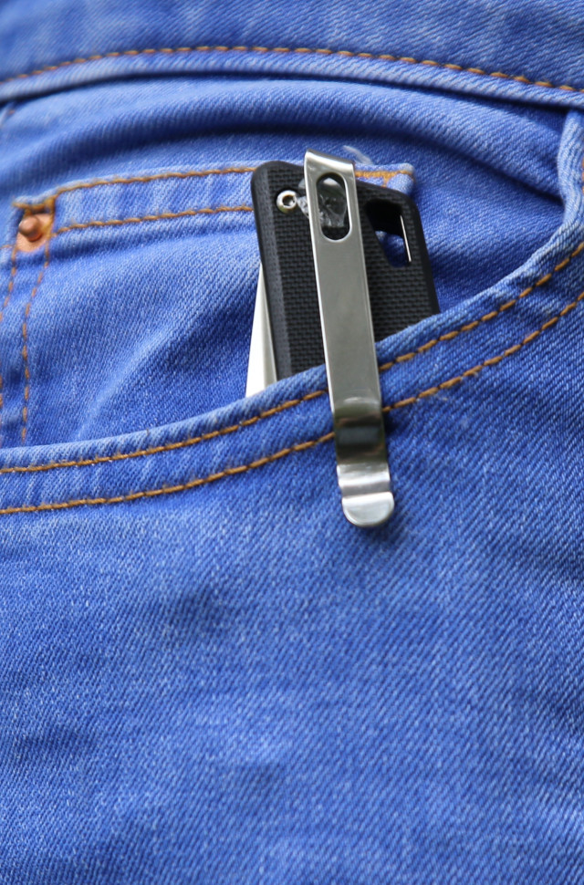 Клинок цього ножа зроблений з популярної ножової сталі марки 440С.це Нержавіючий сплав з досить високою твердістю, щоб ніж міг довгий час утримувати гостру заточку. У той же час, він без праці піддається обробці, а тому наточити лезо ножа можна і в польових умовах, використовуючи невеликий кишеньковий інструмент. Довжина ножа (саме його металевої частини) становить 8,7 см. лезо гладко заточене і закінчується гострим кінчиком, а тому прекрасно підходить для виконання стандартних робіт в процесі приготування їжі, хоча може використовуватися і в безлічі інших ситуацій. Товщина клинка у цього ножа становить 3,3 мм, так що він відмінно пристосований до виконання грубих робіт, що вимагають докладання зусиль. Клинок відшліфований шляхом сатинування, а тому не сильно блищить на сонці.