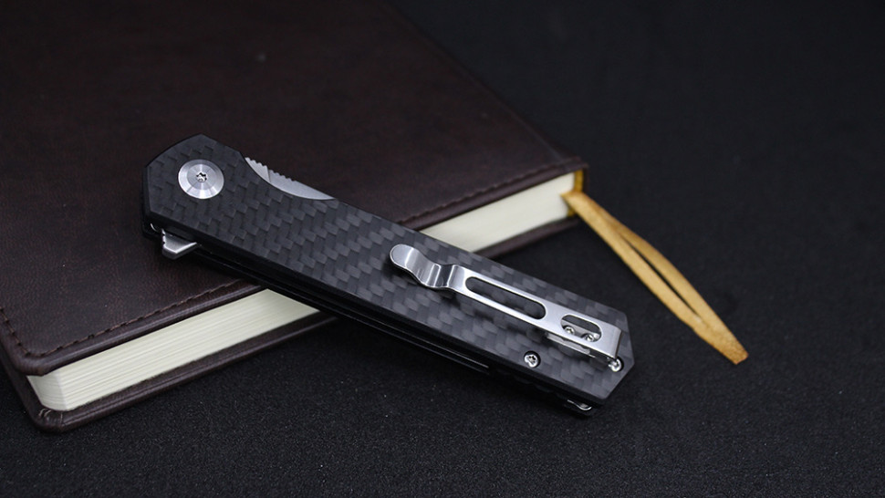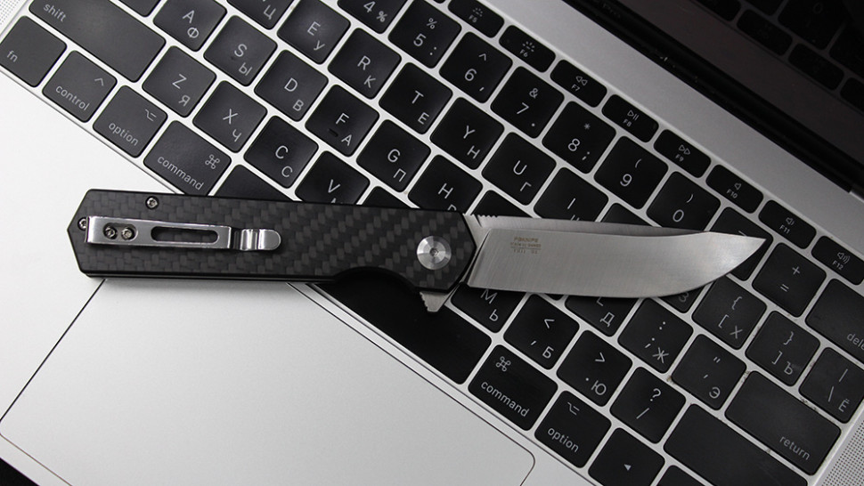 - накладки на рукоять виконані із зносостійкого матеріалу G10 та зовнішнім шаром вуглецевого волокна (Carbon Fiber);