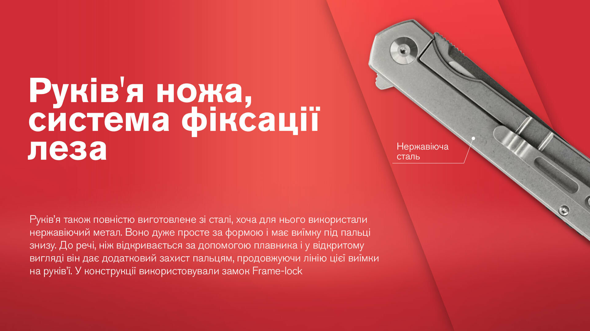 - у конструкції використовується замок Frame-lock.