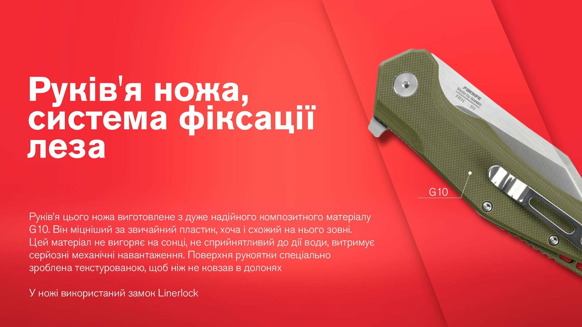 - рукоятка зроблена з G10;