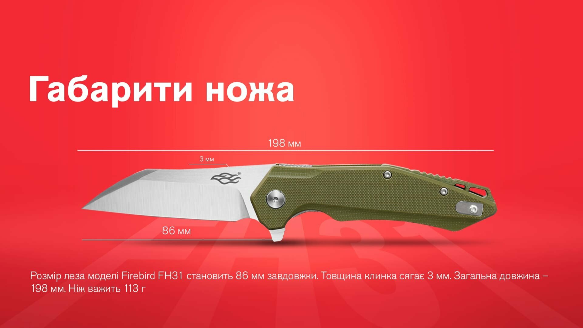 Опис ножа Firebird (by Ganzo) FH31: