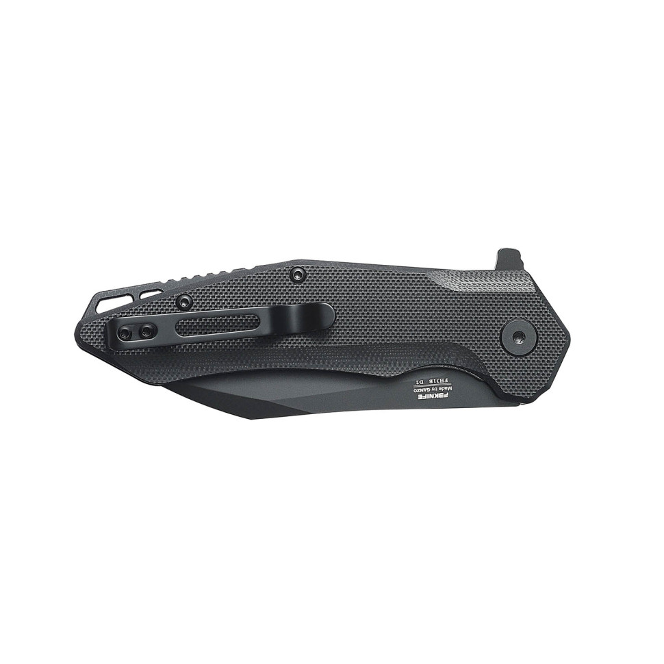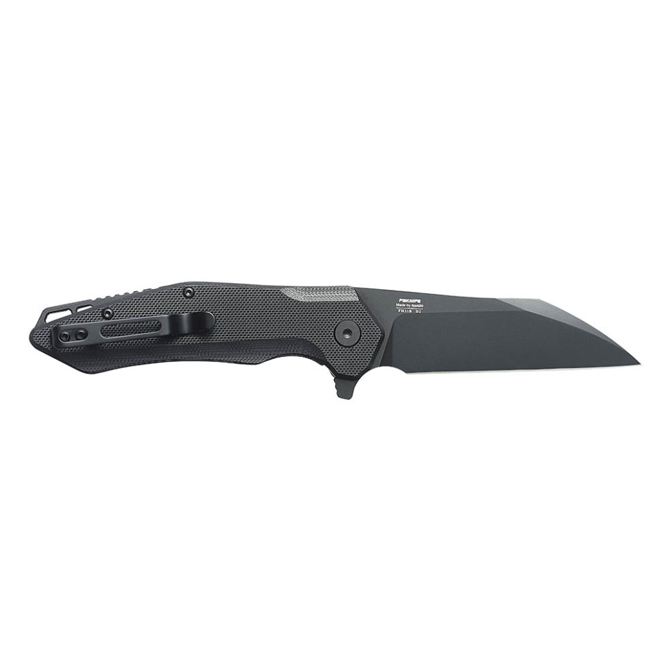 Клинок різновиду wharncliffe (ворнкліф) – форма зручна в тактичних цілях. Ніж знадобиться у точних роботах, наприклад, для розрізання паперу. Він акуратно і ретельно справляється з усіма покладеними на нього завданнями. З чисто практичної точки зору найбільша перевага леза в тому, що воно розрізає матеріал, задіявши всю довжину кромки, що ріже. Сталь марки D2 відрізняється здатністю ефективно утримувати заточування, вона не схильна до появи іржі, досить міцна і характеризується чудовою якістю.