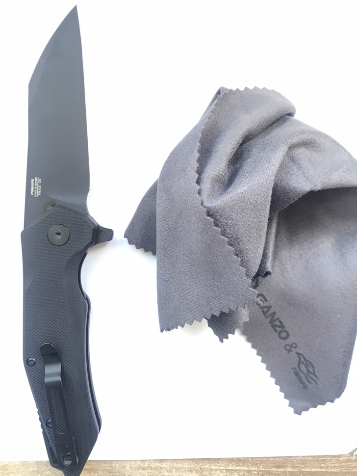 - розпаковка: сам ніж; сертифікат із гарантією на 24 міс, хоча на ці ножі гарантія безтермінова (виробник мене поправить, якщо помиляюсь); тканева серветка для догляду, хоча в інших обзорах які дивився, у складі був тканевий мішочек для зберігання, але вважаю, що серветка більш доцільна, тому як мішочек підійде від звичайних окулярів.
