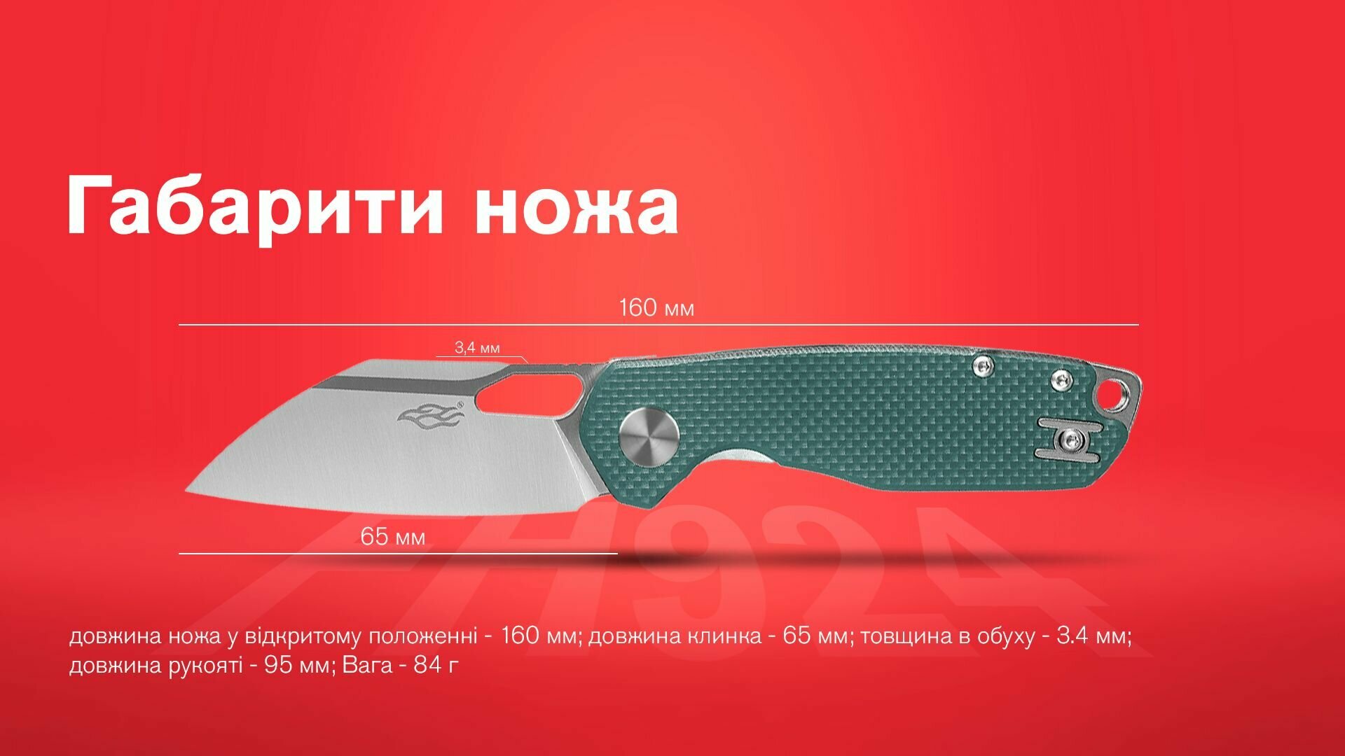 - довжина ножа у відкритому положенні - 160 мм;
