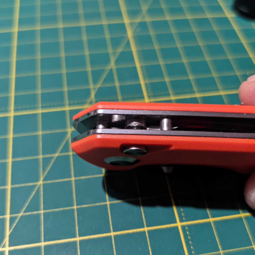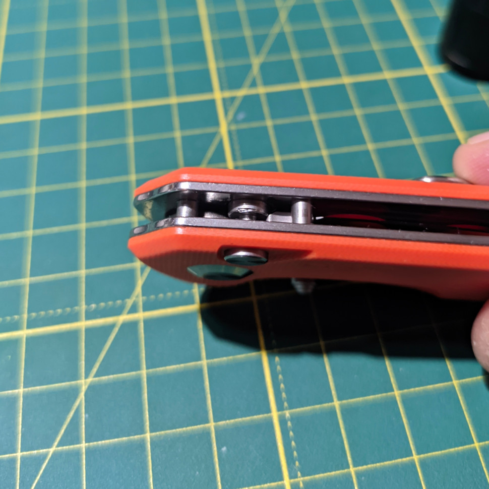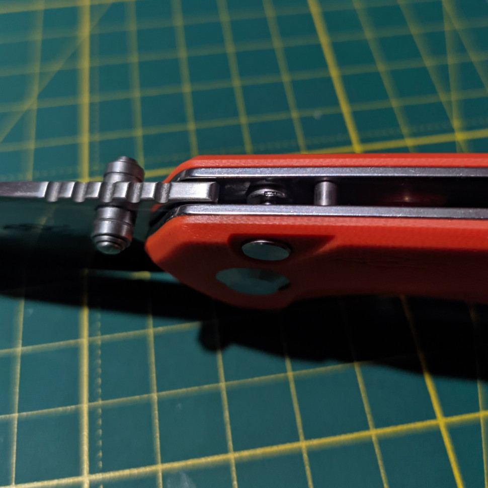 Трошки пофліпавши після розпаковки, помітив нестабільність плавності ходу (клинок пригальмовував періодично). Зазирнув, покрутив кнопку, а там... (див. фото кнопки)
