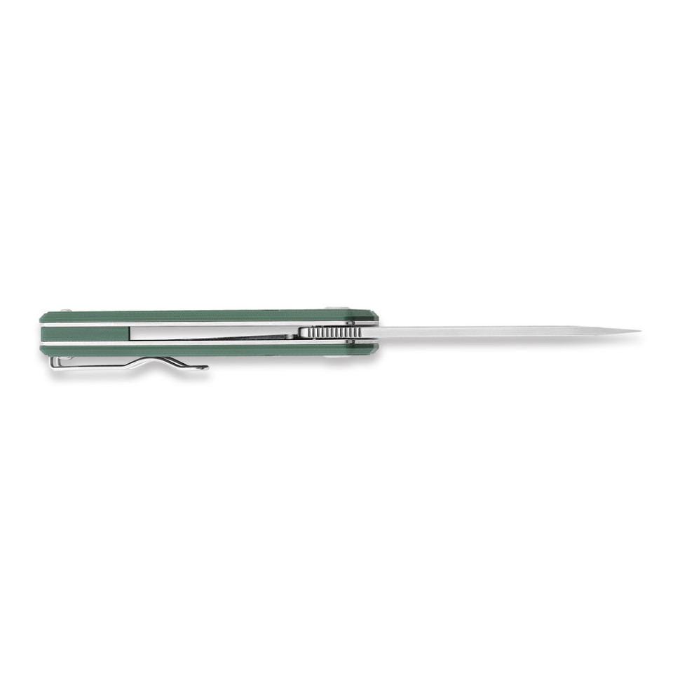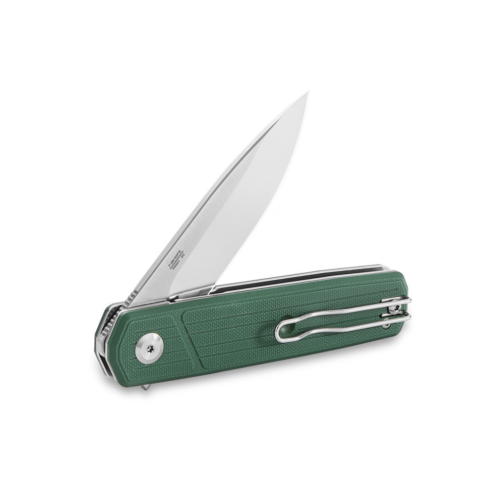 - Накладки G10 на руківʼї. Композит на основі склотканини та епоксидної смоли має особливо щільну структуру, яка не вбирає воду та зберігає цілісність у разі ударів. Текстурована поверхня підвищує якість хвату та контроль над ножем.