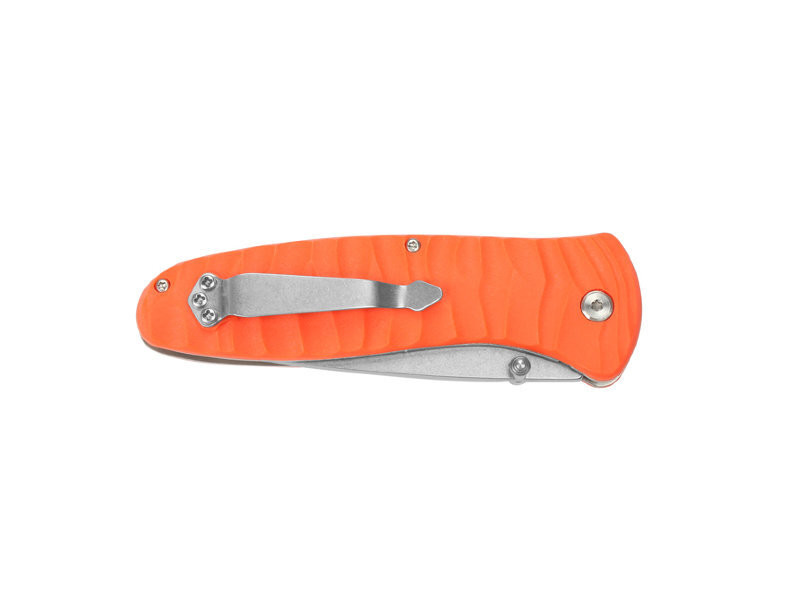 Ручка округленої форми, комфортна, добре лягає в долоню, виконана з склонаповненого волокна. Такий композитний матеріал надає виробу необхідні якості. Стійкість до зносу, міцність, довгий термін експлуатації. Рельєфна поверхня ручки забезпечує відмінне зчеплення, ніж не вислизне з долоні, навіть якщо вона мокра або забруднена. Виконувати виробом можна масу операцій. Нарізати продукти, розкривати консервні банки, розрізати що-небудь. Для фіксації леза є замок типу Liner lock. Зручно і безпечно.