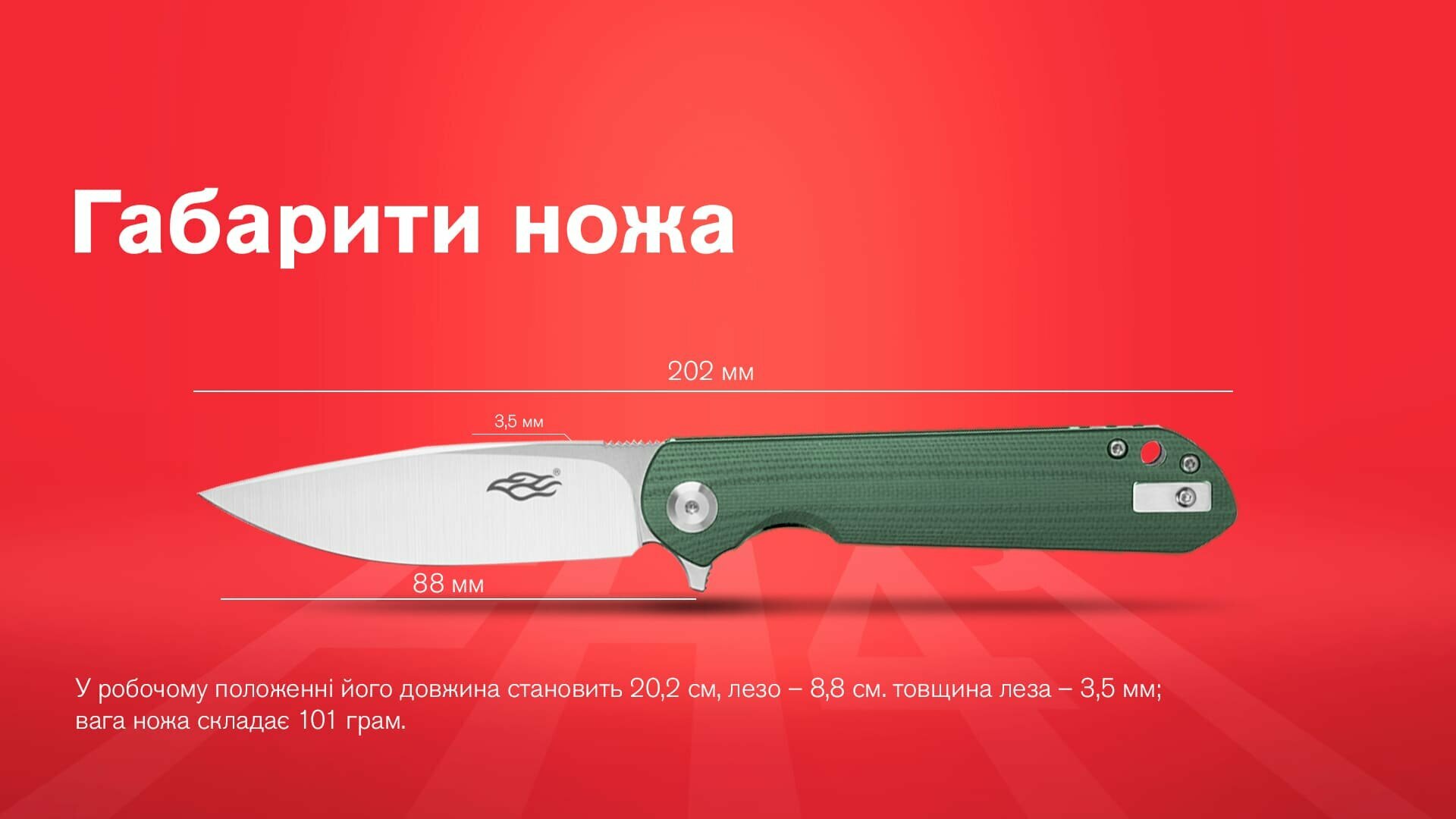 FH41 від Firebird стильно виглядає, але при цьому практично ідеально збалансований. У робочому положенні його довжина становить 20,2 сантиметрів, лезо – 8,8 см.