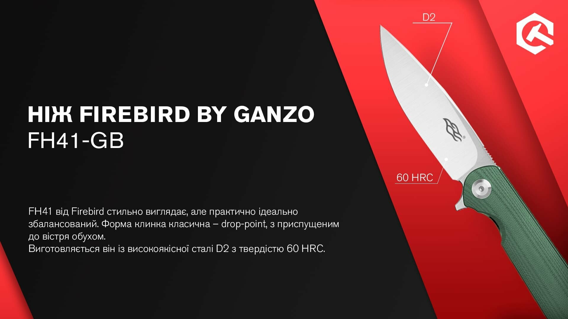Поєднання відмінної міцності, зручності при роботі, низької ціни і приємного зовнішнього вигляду зробили новинку ніж FH41 - Firebird одним з найбільш продаваних виробів компанії Ganzo.