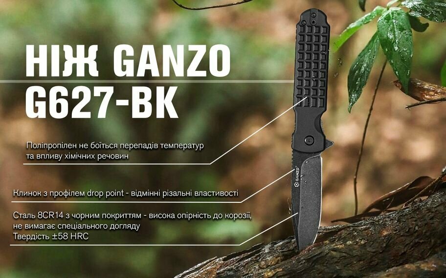 Опис складаного ножа Ganzo G627-BK, чорного: