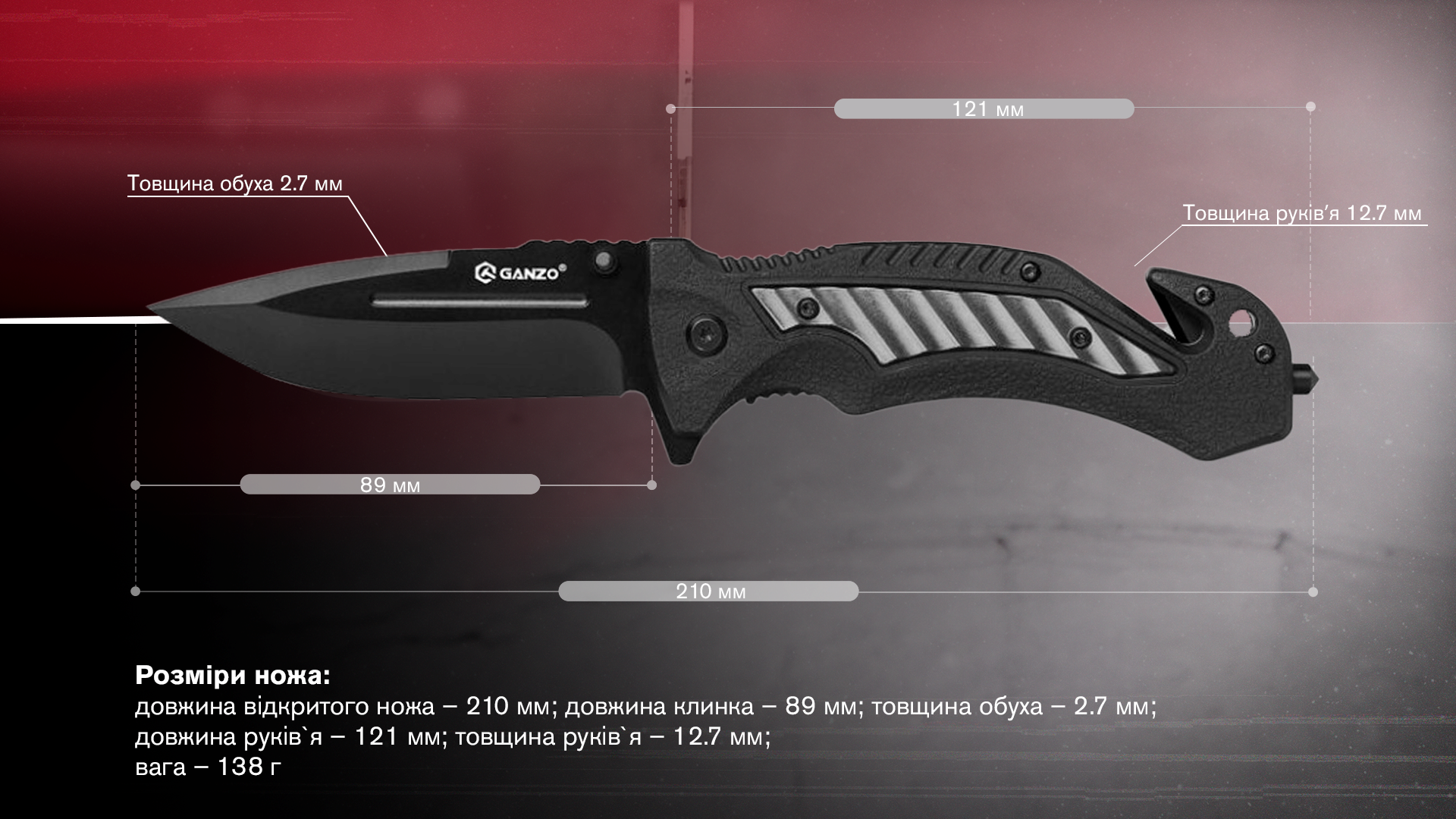 Незвичайний дизайн — це перше, що привертає увагу при погляді на ніж Ganzo G628. Складаний клинок має чорне покриття в тон руківʼю, що додає деяку брутальність в загальний вигляд інструмента. Водночас модель не позбавлена практичності завдяки наявності в конструкції не тільки гострого леза, а й кількох функціональних доповнень у вигляді стропоріза та склобою на руківʼї, які роблять з ножа ідеального супутника для туристичних подорожей.