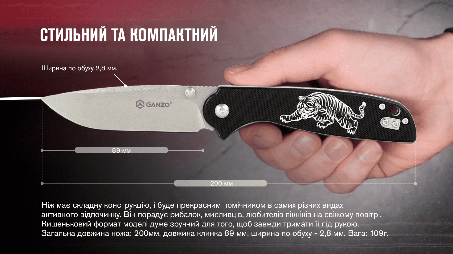 Основні особливості моделі: Матеріал леза (сталь марки 8CR14); компактні розміри; унікальний принт на рукояті.