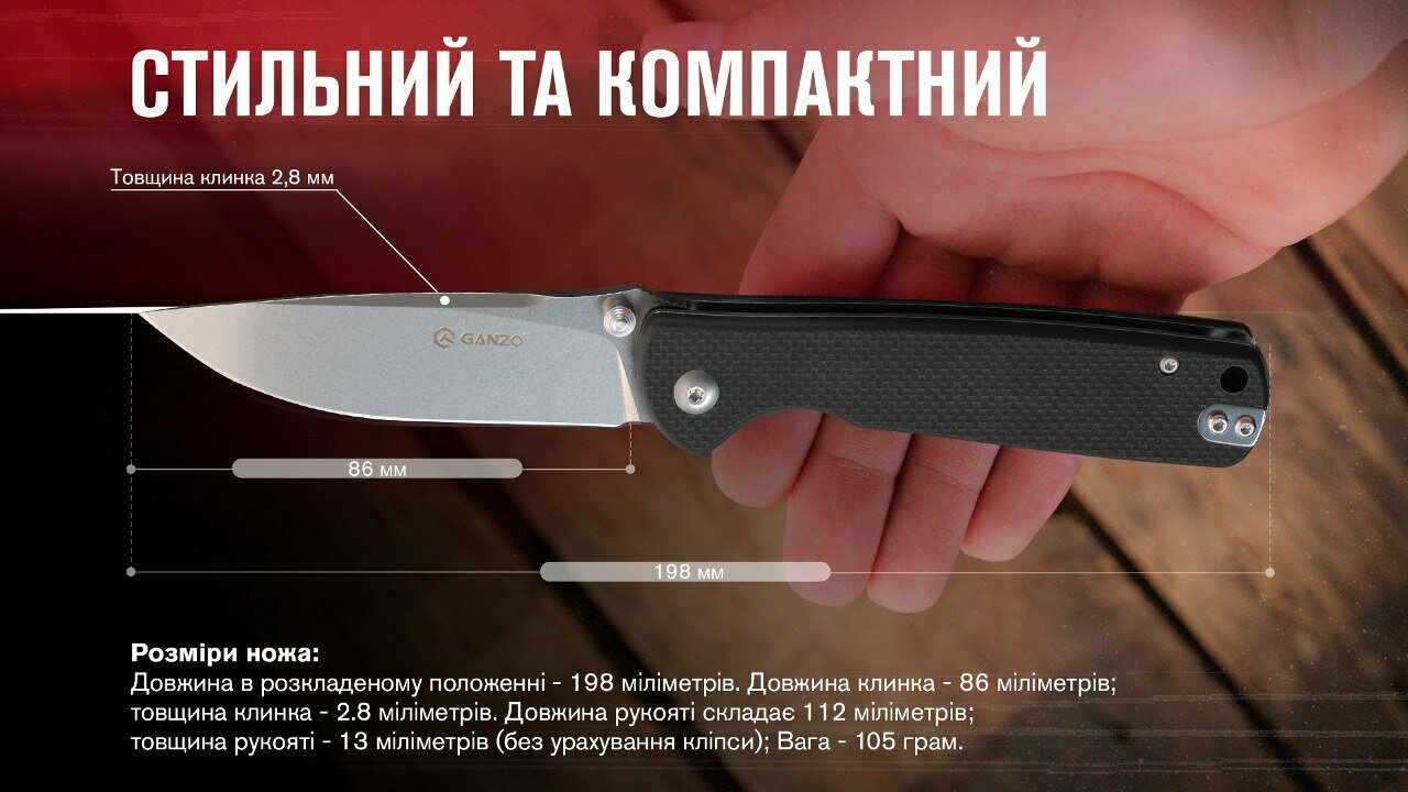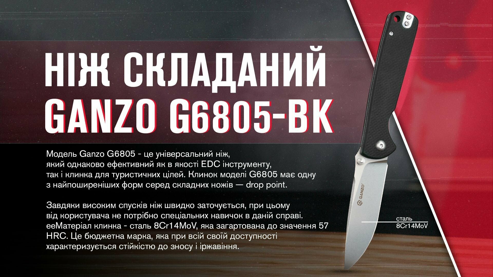 Модель Ganzo G6805 - це універсальний ніж, який однаково ефективний як в якості EDC інструменту, так і клинка для туристичних цілей. Даний ніж має просту в догляді конструкцію складного типу, яку можна непомітно носити в кишені одягу, рюкзака або зберігати в бардачку автомобіля на екстрений випадок.
