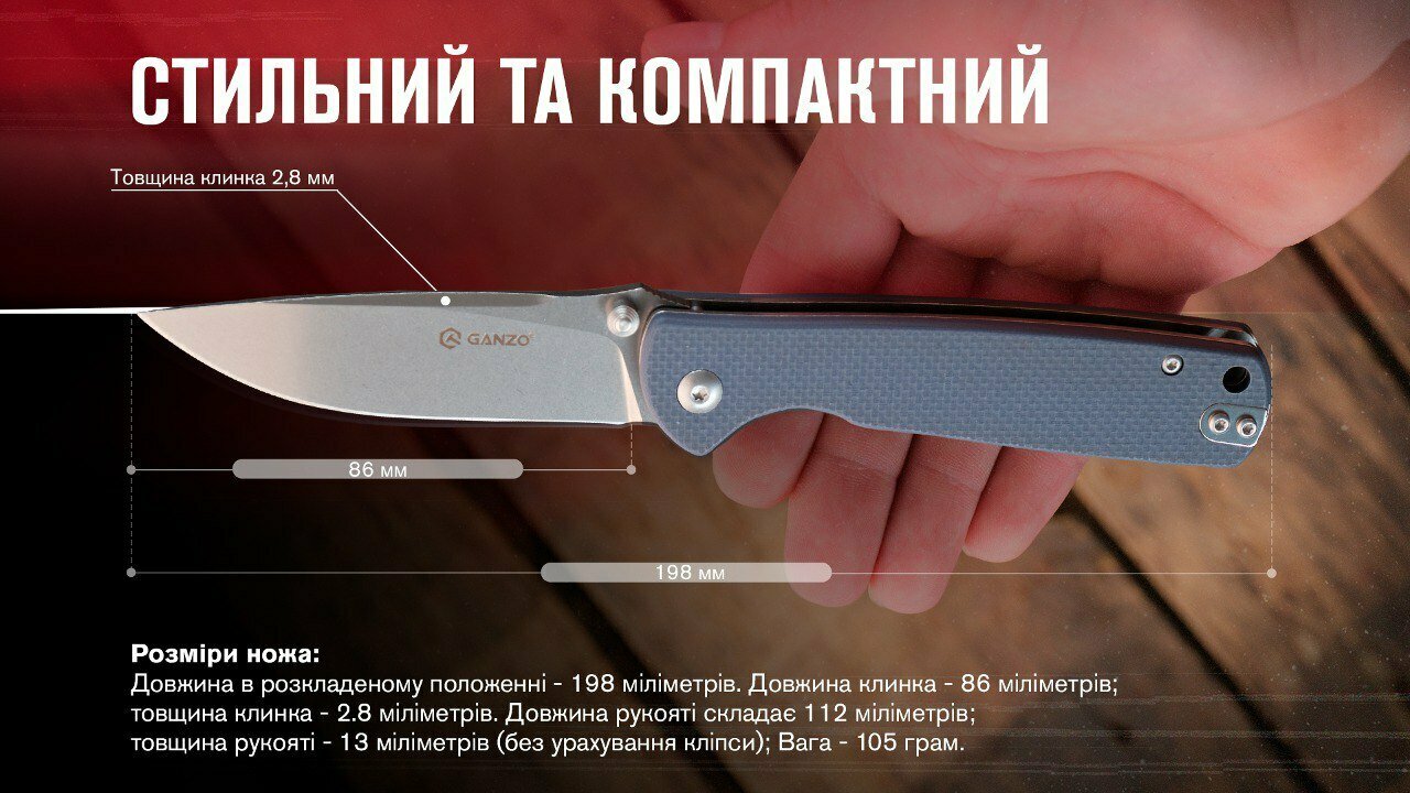 Модель Ganzo G6805 - це універсальний ніж, який однаково ефективний як в якості EDC інструменту, так і клинка для туристичних цілей. Даний ніж має просту в догляді конструкцію складного типу, яку можна непомітно носити в кишені одягу, рюкзака або зберігати в бардачку автомобіля на екстрений випадок.