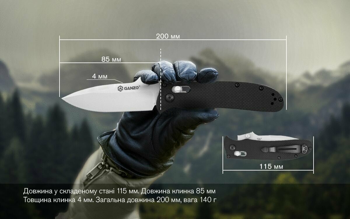 У розкритому стані довжина Ganzo G704 – близько 20 см, лезо – 8,6 см.